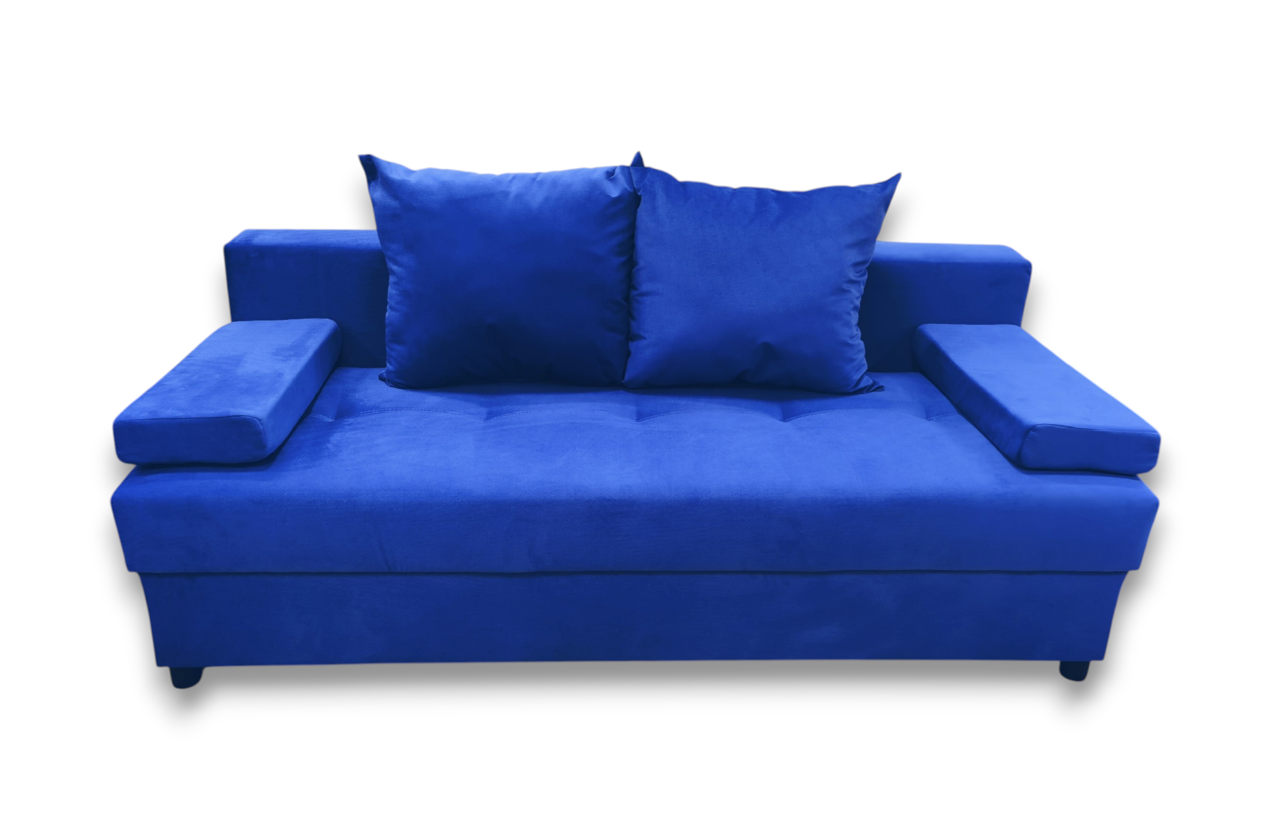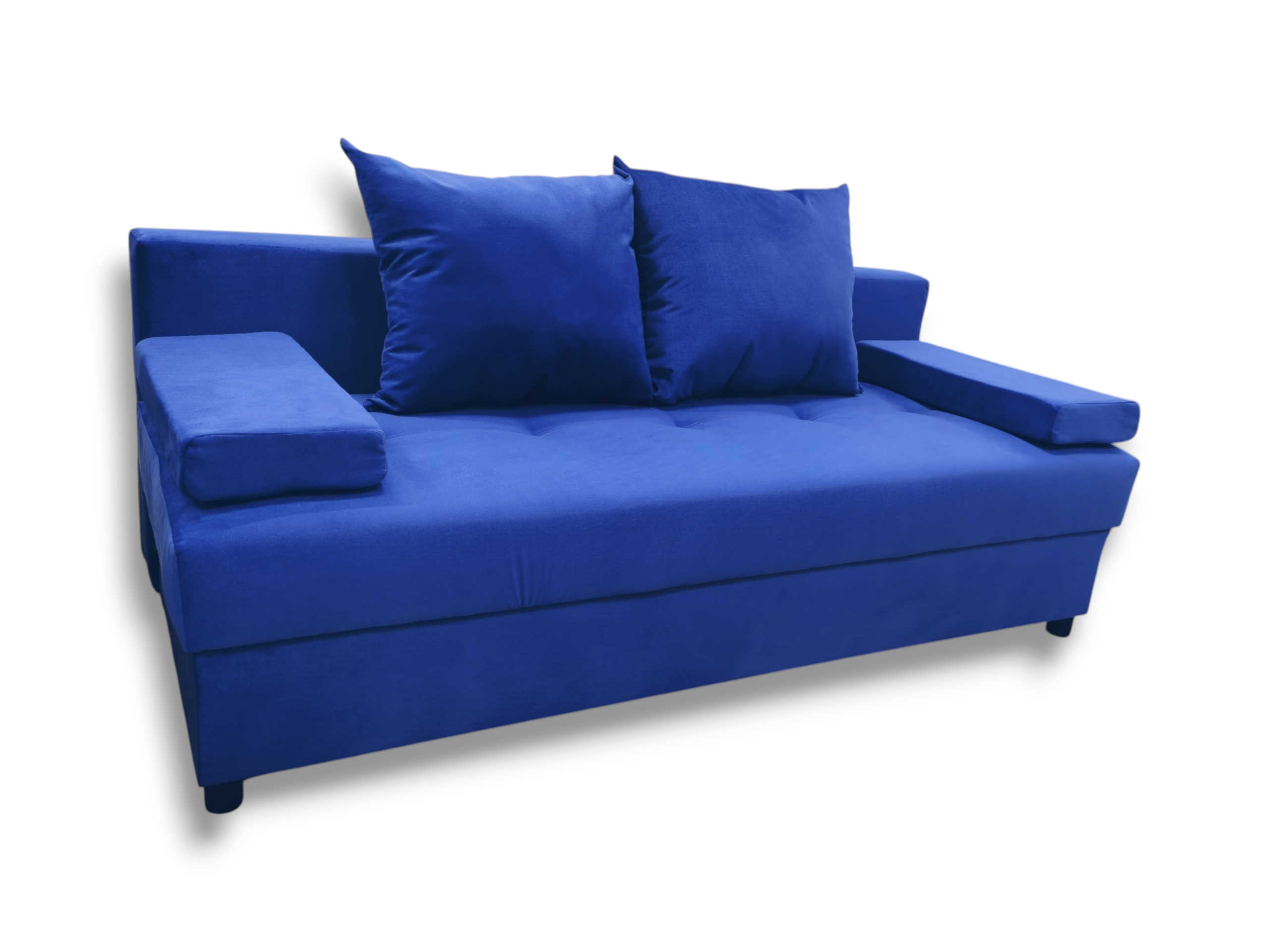 Подлокотники в виде прямоугольных валиков можно снять, сделав сиденье еще более просторным. Диван легко раскладывается в комфортное спальное место, а наличие ящика для хранения постельных принадлежностей делает его еще более практичным и удобным в использовании.