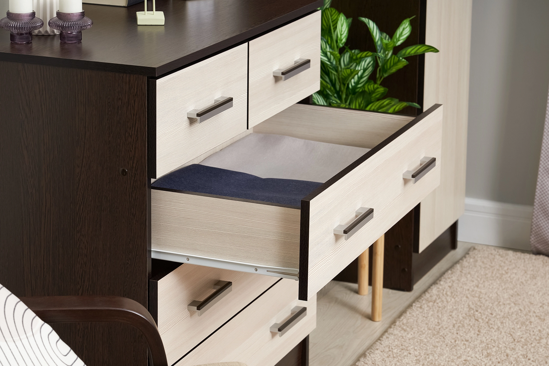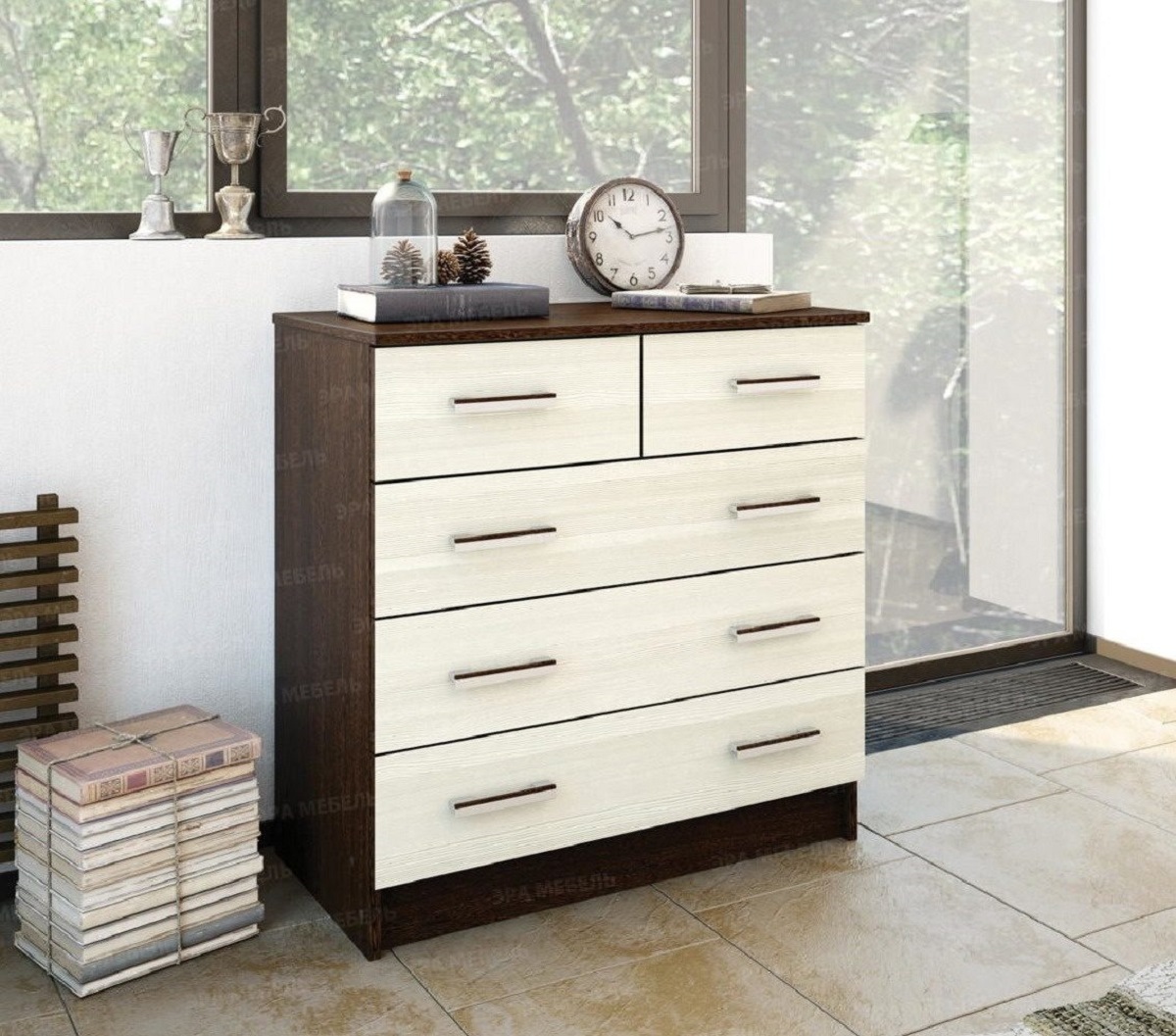 ✅ Вместительный Комод К800-3/2 имеет два малых ящика наверху для белья и аксессуаров и три больших, в которых будет удобно хранить одежду и вещи. Модель будет полезной частью интерьера прихожей, спальни, гостиной или детской комнаты. Широкая столешница позволяет поставить небольшой плоский телевизор или использовать ее для необходимых под рукой мелочей.