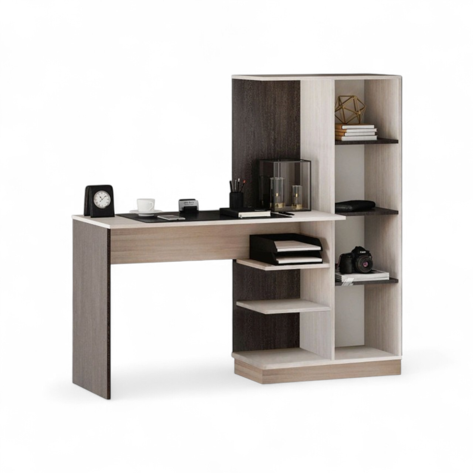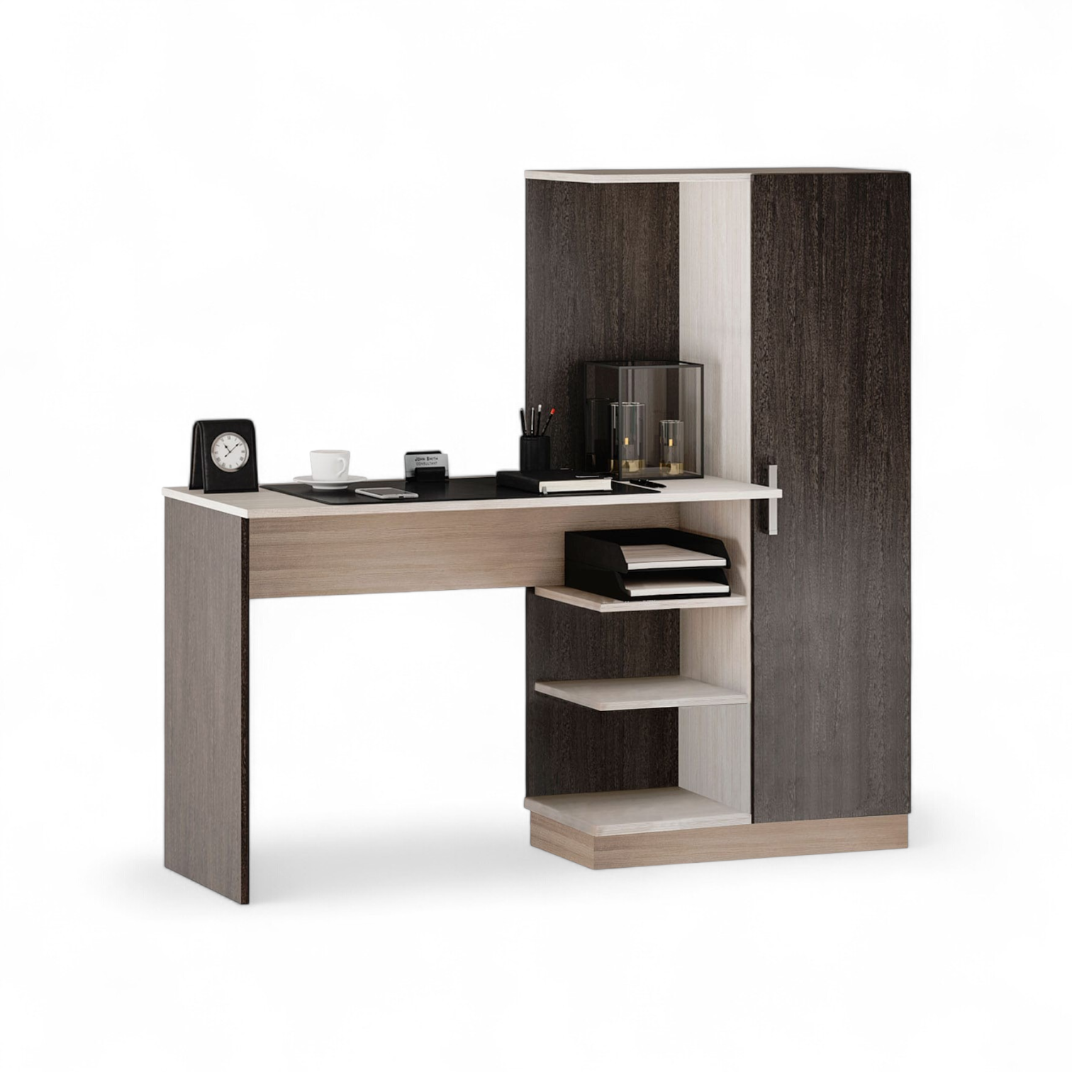 ✅ Обустроить место для работы или учебы можно с помощью компьютерного стола "Бейсик". Модель сделана из ЛДСП двух цветов – светлого лоредо и темного венге. Благодаря такому цветовому решению, изделие будет выигрышно смотреться в любом интерьере. Конструкция модели представляет собой вместительную столешницу, зону с открытыми полками, а также небольшой пенал с распашной дверцей, в котором можно хранить необходимые для занятий вещи.