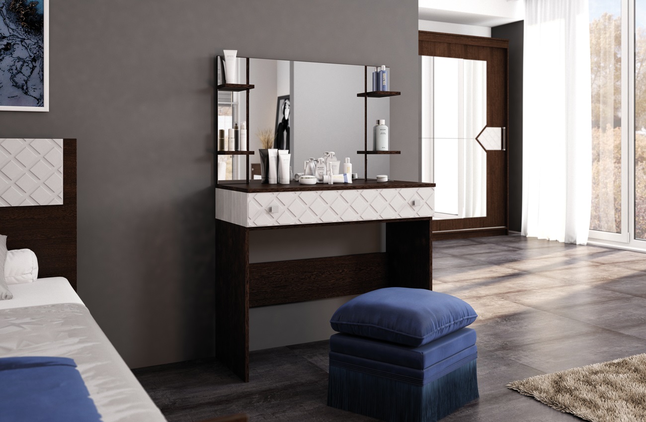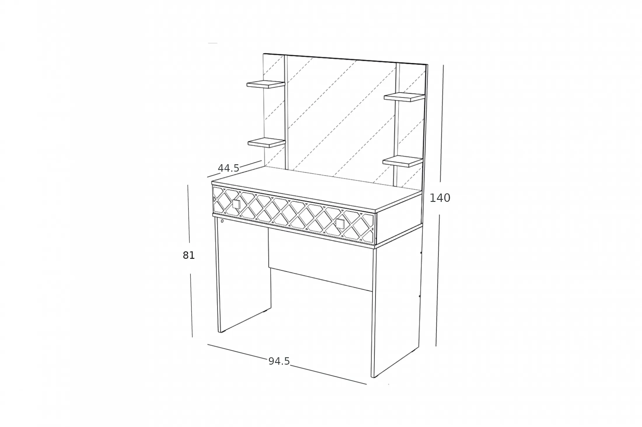 Наполнение: Выдвижной ящик для хранения на роликовых направляющих, полочки на зеркале